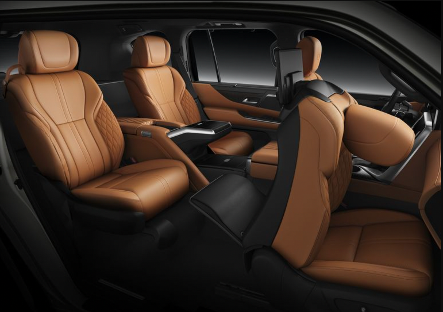 In the LX 600 Ultra Luxury trim level, the second-row has VIP seats. The adjustable front passenger seat allows for 43 inches of legroom for the seat behind it. These riders may utilize a pop-up footrest. It’s like the Cadillac Escalade or Lincoln Navigator full size SUVs only every automotive dollar is well spent on technology and comfort.