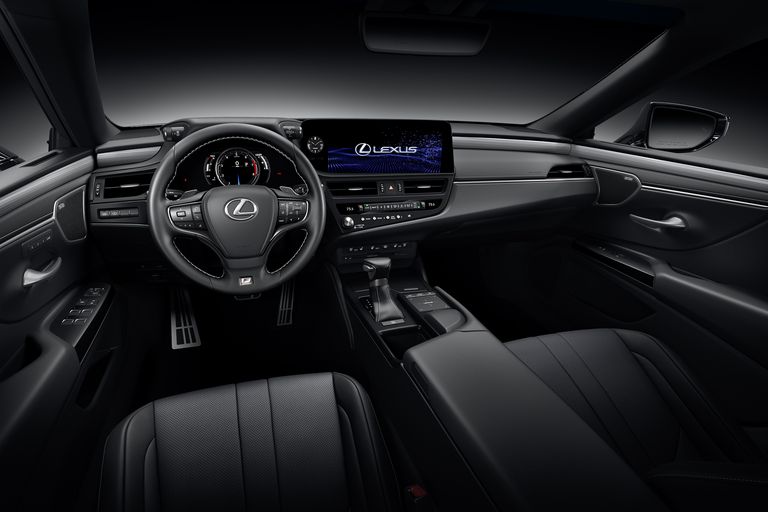 The ES 250 and 350 start you off with 10-way power-adjustable chairs and a perforated NuLuxe interior trim. Well-rounded dash tech includes an 8-inch touchscreen, a color driver’s display and a 10-speaker audio system.