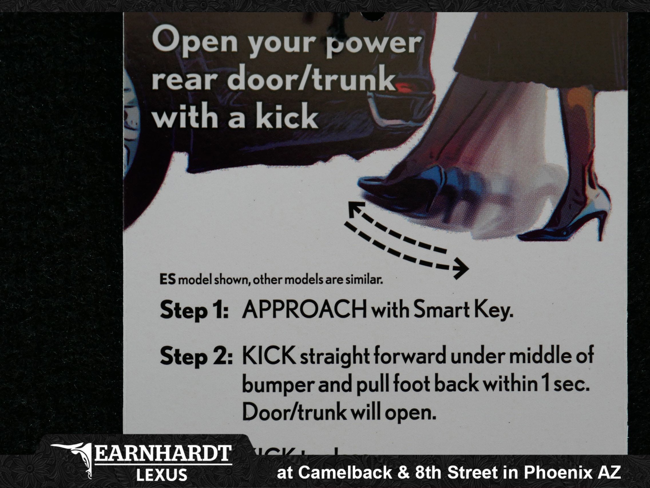 Most new vehicles at Earnhardt Lexus include an “Arizona Window Tint Package” (sometimes referred to as the “Protection Package” or “No Bull Protection Package”) inclusive of highly-demanded, popular items designed to protect your investment such as window tint to help shield your interior from the intense Arizona sun. Price of the “Arizona Window Tint Package” is $579 at this dealership for most Cars, Vans, CUVs and SUVs. For some specific vehicles a Clear-Bra has been added and will be reflected accordingly in the price-stack. Actual vehicle sale price and payments may vary for various reasons - including but not limited to - applicable manufacturer rebates, special limited time offers, dealer incentives, taxes, fees, and buyer's credit qualifications, dealer installed accessories, market product (or vehicle) scarcity and $599.00 dealer doc fee. Financing on approved credit. Must qualify for some offers. Some offers may not be available with special financing, lease and some other offers.